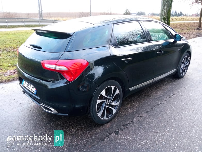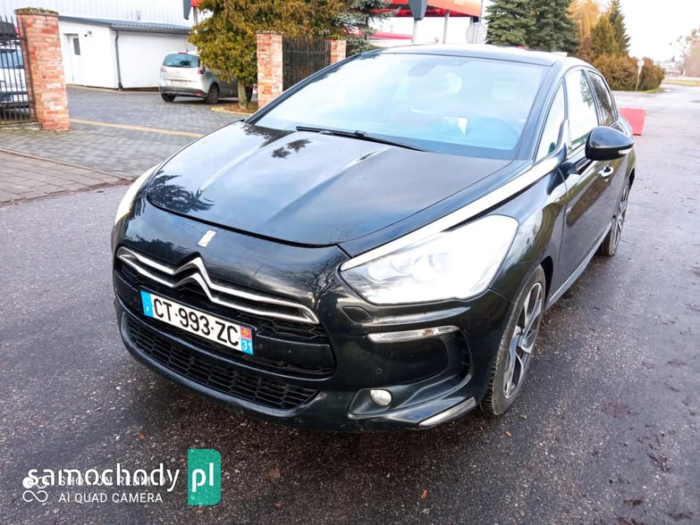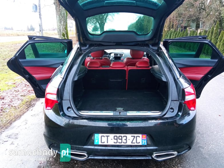 Witam. Do zaoferowania mam Citroena DS5 w hybrydzie- 2.0 HDI+silnik ele. 163KM+37KM. Jest to naj bogatrza wersja wyposażenia, ma wszystko- szklany dach z roletami, xenony, doswietlanie zakrętów ,grzane fotele (fotel kierowcy z funkcją masażu), nawigacja, Head-up, czujniki parkowania- przód tył, czarna podsufitka, światła LED, sensory deszczy zmierzchu... Tapicerka czewona skóra w rąby, podgrzewana z masażem, skrzynia automat z napędem na wszystkie koła. Porysowane lewe drzwi. Pali i jeżdzi super.
