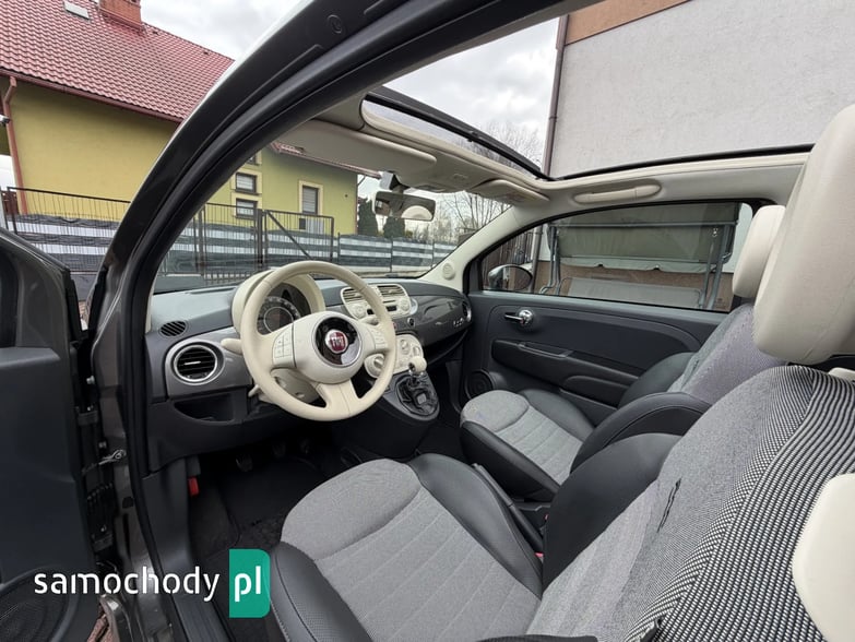 2013 ROK - LIMITOWANA WERSJA - COLLEZIONE ITALO DESIGN - KTÓRA CECHOWAŁA SIĘ PEŁNYM PANORAMICZNYCH SZYBERDACHEM STEROWANYM W PEŁNI ELEKTRYCZNIE W KOLORZE BORDOWYM, SPECJALNYM KOLOREM NADWOZIA SZAREJ PERŁY ( REWELACYJNIE WYGLĄDA NA ŻYWO Z BORDOWYM DACHEM ), DWUKOLOROWĄ PÓŁSKÓRZANĄ PIKOWANĄ TAPICERKĄ Z NAPISEM 500 Z PAKIETU IDALO DESIGN KOMPONUJĄCĄ SIĘ DODATKAMI DESKI DO KOLORZE NADWOZIA, BIAŁYMI DODATKAMI DESKI ROZDZIELCZEJ ORAZ BIAŁĄ KIEROWNICĄ ORAZ GAŁKĄ ZMIANY BIEGÓW WYKOŃCZENIU BLACK WHITEPEARL, CHROMOWANYMI DODATKAMI NADWOZIA KLAMEK, LUSTEREK ORAZ ZDERZAKÓW, ALUMINIOWYMI ORYGINALNYMI FELGAMI FIAT Z WERSJI COLLEZIONE ORAZ BARDZO BOGATYM WYPOSAŻENIEM DODATKOWYM KTÓRY OPISANY JEST PONIŻEJ