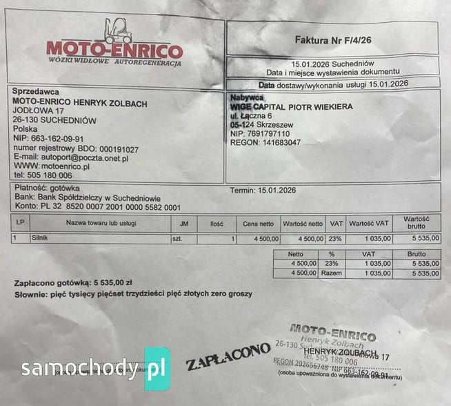 Po sprowadzeniu musiałem wymienić silnik.