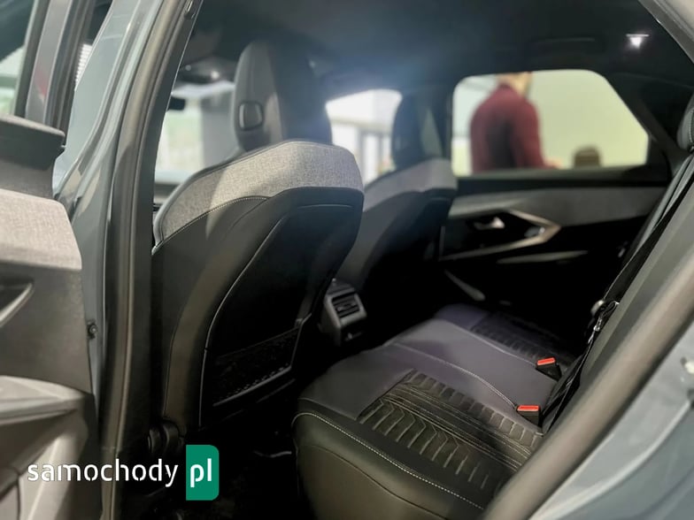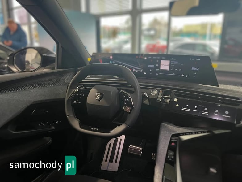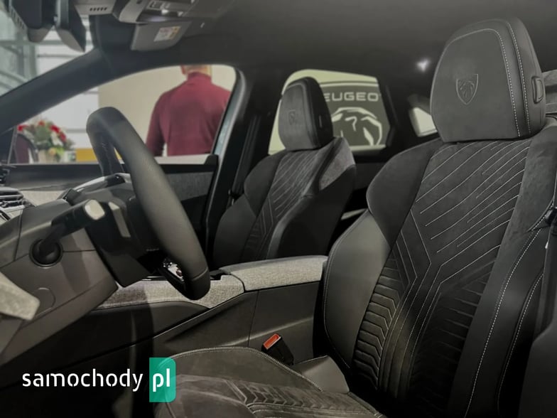 bagażnika za pomocą ruchu stopą, Bezprzewodowa ładowarka indukcyjna do telefonu, Czujniki parkowania z tyłu i z przodu, kamera cofania, Dach w kolorze czarnym Perla Nera, Dywaniki podłogowe z przodu i z tyłu (logo GT), Elektryczne sterowanie drzwi bagażnika, Elektryczne sterowanie szyb z przodu i z tyłu, Felgi aluminiowe 19" Breda, opony 225/55 R19 103V, Fot. kierowcy: ręczna regulacja wzdłużna, wysokości, pochylenia oparcia, odcinka lędźwiowego; podgrzewany, Kierownica ze skóry licowej z ozdobnymi przeszyciami i logiem GT, wielofunkcyjna, Klimatyzacja elektroniczna dwustrefowa, Klimatyzacja elektroniczna dwustrefowa, Lusterka zewnętrzne elektrycznie składane ze światłem powitalnym, Lusterko wewnętrzne elektrochromatyczne, bezramkowe, Pedały z aluminiowymi nakładkami, Peugeot i-Connect Advanced: Radio DAB, nawigacja, BlueTooth, bezprzewodowy interfejs Apple Carplay/Android Auto Peugeot Connect SOS&Assistance, Podgrzewanie kierownicy, Podłoga bagażnika z możliwością ustawienia na dwóch poziomach, Reflektory przednie Matrix LED, System bezkluczykowego dostępu i uruchamiania pojazdu, Tempomat adaptacyjny ograniczający prędkość