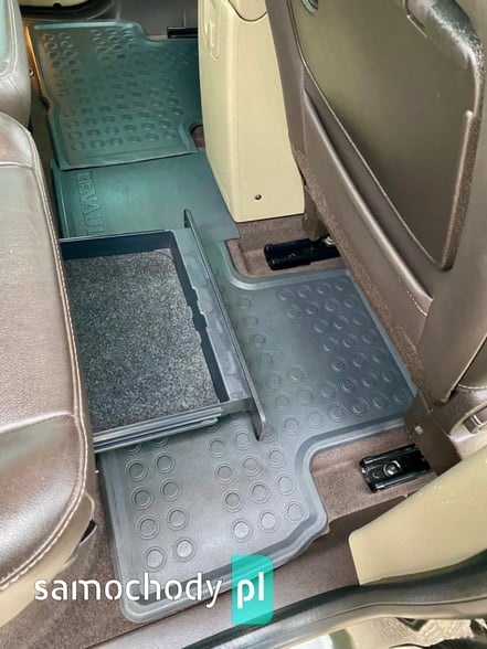 - system bezkluczykowy wolne ręce: zamykanie / otwieranie / odpalanie; czujniki parkowania tył, czujnik zmierzchu – automatyczne światła, czujnik deszczu – automatyczne wycieraczki, przyciemniane tylne i boczne szyby fabrycznie, automatyczna dwustrefowa klimatyzacja, tempomat, ogranicznik prędkości, wejścia: na kartę SD / USB / AUX, skórzana wielofunkcyjna kierownica, skórzana brązowa tapicerka, podgrzewane przednie fotele, pełna elektryka szyb i lusterek, elektryczne lusterka boczne, automatycznie składane i rozkładane lusterka boczne, masa schowków/ szuflad, nawigacja polskojęzyczna, komputer pokładowy, firanki przeciwsłoneczne w tylnych drzwiach, stoliki w oparciach foteli, osobno regulowane / przesuwane / regulowane kąty oparć w tylnych fotelach, fabryczna dodatkowa mata ochronna bagażnika.