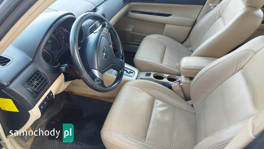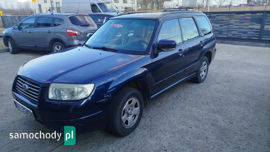 Sprzedam Subaru Forester SG z 2006 roku z silnikiem 2.0 benzyna i automatyczną skrzynią biegów. Stan wnętrza oceniam na dobry, stan mechaniczny dobry. Blacharka do zrobienia co widać na zdjęciach. Drzwi przednie pasażera uszkodzone po stłuczce ale posiadam drugie na wymianę. Dwa komplety kół lato i zima. Napędy sprawne. Rok temu zmieniony alternator oraz akumulator. Amortyzatory tylne wymienione 3 lata temu. Do auta posiadam klatkę do przewozu dwóch psów montowaną w bagażniku.