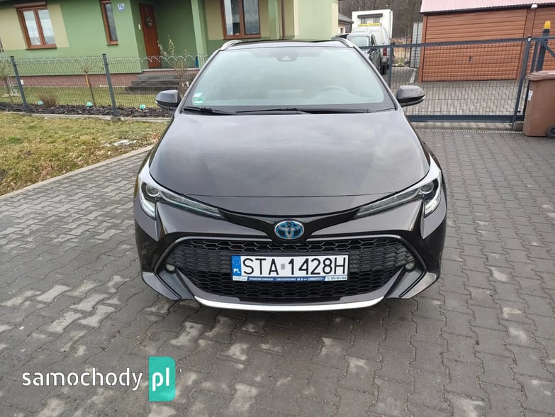 Do sprzedania Toyota Corolla z 2019 roku z silnikiem hybrydowym o pojemności 1800 cm3 i mocy 122 KM (nie wiem jak dokładnie liczy się moc tych dwóch silników, ogólnie dla mnie to jeździ lepiej jak 122 KM) z przebiegiem 161 xxx km (cały czas rośnie, samochód w codziennym użytkowaniu) skrzynia automatyczna jak to w hybrydzie do tego auto posiada bardzo fajnie wyposażenie w skład którego wchodzi: