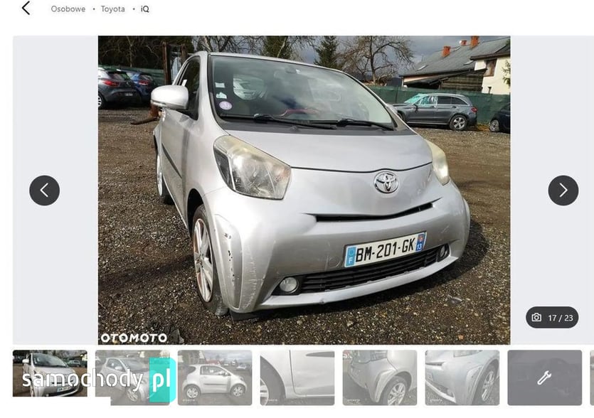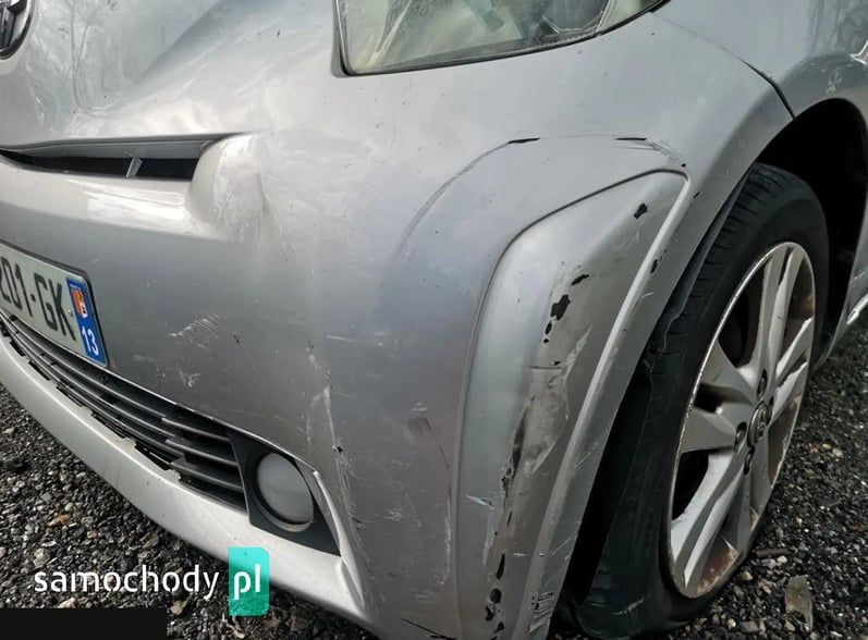 samochód kupiony do firmy (jako niegroźnie uszkodzony - załączam zdjęcia przed naprawą). teraz po naprawie blacharsko-lakierniczej, po przeglądzie w autoryzowanej stacji Toyota. niestety jedna pracownica nie chce jeździć automatem i musiałem kupić inny z ręczną skrzynią. nowe opony. naprawa: nowe oryginalne drzwi, nowy zderzak tył, wspawana wstawka w tylnym błotniku. sprzedaje praktycznie po kosztach zakupu i naprawy. ten model na mobile.de osiąga znacznie wyższe ceny