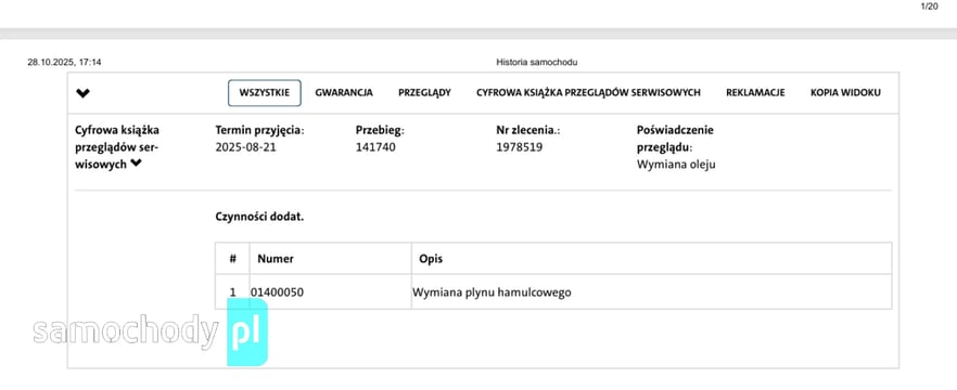 Pełna historia serwisowa. Ostatni wpis na 142.000 km