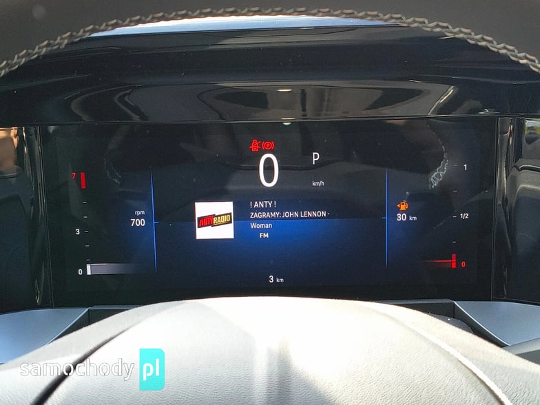 - Koło kierownicy sportowe pokryte skórą ekologiczną, spłaszczone u dołu, z przyciskami sterowania