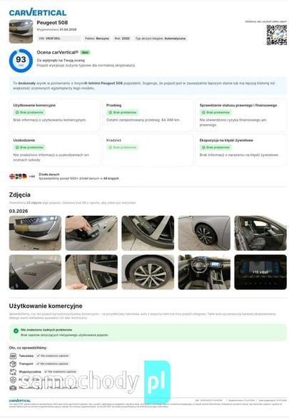 Przebieg potwierdzony historią serwisową i raportem CarVercital.