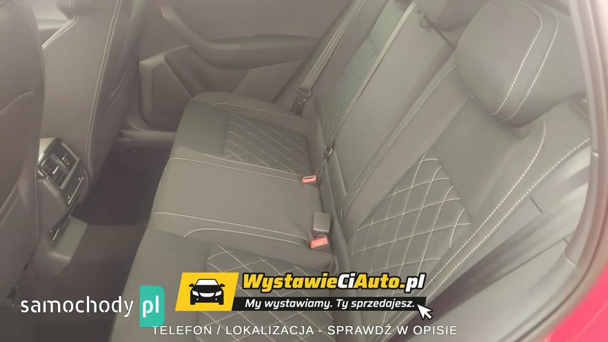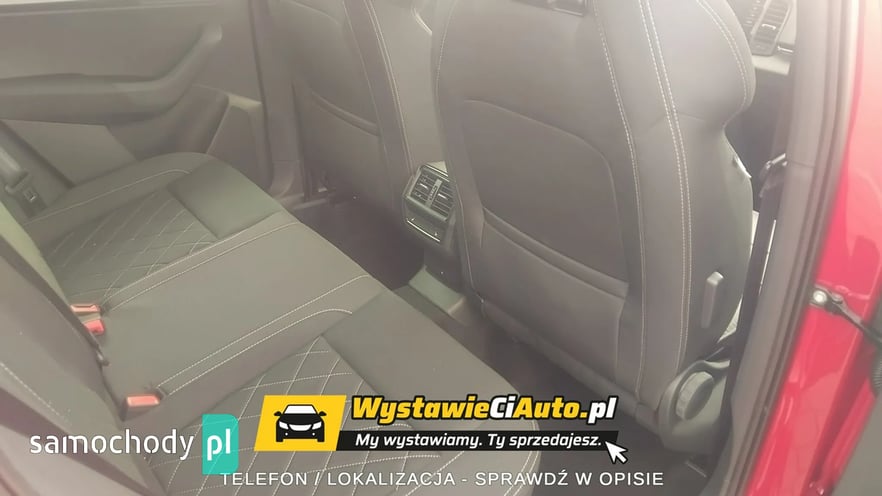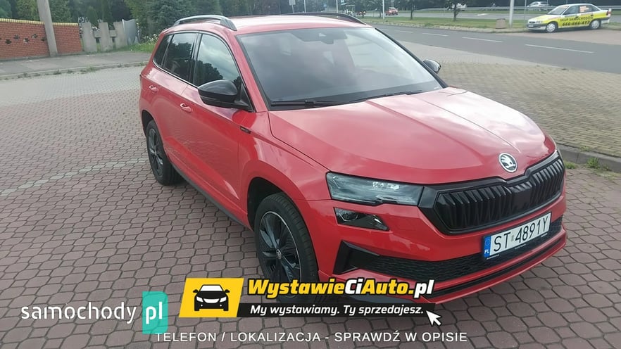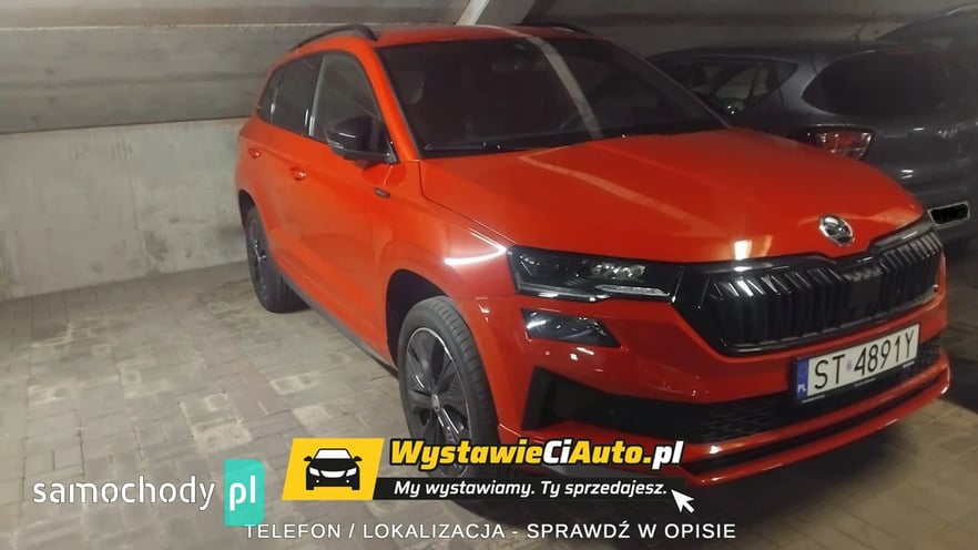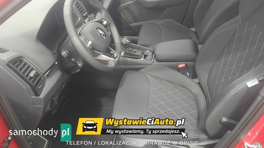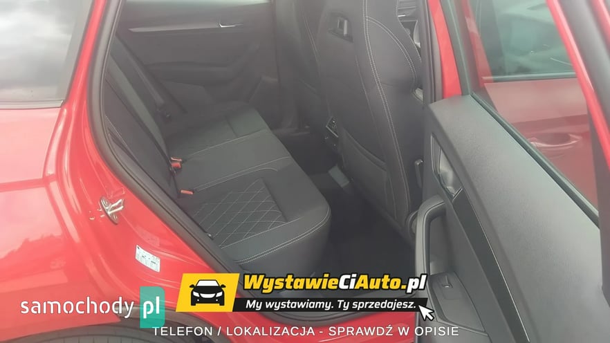 Skoda Karoq Sportline 1,5 TSI (150 KM) 110 kW 7-biegowa DSG Auto posiada pakiet premium cars serwisowy z limitem 4 lata lub 80000 km. Opony są ubezpieczone na okres 5 lat. Auto sprzedaje z powodu nietrafionego zakupu. Jest możliwość diagnostyki mechanicznej i lakierniczej w punkcie diagnostyki lub w autoryzowanym serwisie Skody. Więcej informacji udzielę telefonicznie. Dodatkowe pakiety dokupione przy konfiguracji samochodu. Kolor Czerwień Velvet Metalizowany Obręcze kół ze stopów lekkich Procyon 7Jx18\" Wnętrze Design Sportline Bezpieczeństwo Adaptive Cruise Control – aktywny tempomat do 210 km/h Pakiet Winter Plus – Podgrzewane zewnętrzne miejsca tylnej ka napy – Spryskiwacze reflektorów przednich – Podgrzewana przednia szyba Komfort Pakiet Simply Clever Family – Uchwyt na tablet – Elektryczna blokada otwarcia tylnych drzwi od wewnątrz – Uchwyt ISOFIX na fotelu pasażera z przodu Pakiet na bezdroża Kessy Full z alarmem z funkcją Safe Podwójna podłoga bagażnika Siatka oddzielająca przestrzeń bagażową od pasażerskiej Gniazdo 230V, USB-C w tylnej części podłokietnika Trzeci kluczyk Dojazdowe koło zapasowe z lewarkiem Wyposażenie standardowe na modelu Karoq Sportline Komfort, bezpieczeństwo i funkcjonalność Głośników 8.Lane Assist (bez HOD)System Infotainment. System Start-Stop. Światła do jazdy dziennej z funkcją Coming/Leaving Home. Czujnik zmierzchu i deszczu. Tylne światło przeciwmgłowe. ESP – system stabilizacji toru jazdy. Dostęp zdalny / dostęp zdalny + Infotainment online. Smartlink — połączenie przewodowe / bezprzewodowe dla urządzeń Apple i OS. Kurtyny powietrzne i boczne poduszki powietrzne z przodu Driver alert system. System alarmowy eCall+TPM — system kontroli ciśnienia w oponach. Funkcja rozpoznawania znaków drogowych. Elektrycznie sterowane szyby przednie i tylne. Poduszka kolanowa po stronie kierowcy. Obsługa głosowa Hill Hold Control — system wspomagania ruszania pod wzniesienia. Climatronic — klimatyzacja automatyczna Sunset. Czujniki parkowania — przód i tył. Virtual Cockpit — cyfrowy zestaw wskaźników. Kamera cofania. Automatyczna regulacja zasięgu reflektorów z funkcją doświetlania zakrętów. Światła na złe warunki, funkcja doświetlania zakrętów, światła autostradowe. Driving Mode Select — wybór profilu jazdy Wnętrze Gałka dźwigni zmiany biegów pokryta skórą. Wykładzina podłogi bagażnika z płaskiej włókniny igłowanej. Schowek na okulary. Lusterko wsteczne automatycznie przyciemniane. Mocowania Isofix do fotelika dziecięcego. Manualna regulacja wysokości siedziska foteli z przodu. Manualna regulacja odcinka lędźwiowego dla przednich foteli Gniazdo 12 V w przestrzeni bagażowej. Oparcie tylnej kanapy dzielone, z centralnym podłokietnikiem. Nakładki na progi w drzwiach przednich. Fotele sportowe. Sportowa kierownica skórzana, wielofunkcyjna, podgrzewana z manetkami. Oświetlenie Ambiente. Podgrzewane fotele przednie. Tapicerka materiałowa. Oświetlenie przestrzeni wokół nóg z przodu i z tyłu Nadwozie Elektrycznie sterowane i składane, podgrzewane lusterka boczne. Tylne światła Full LED z dynamicznymi kierunkowskazami. Obręcze kół ze stopów lekkich Procyon 7Jx18\"Reflektory Full LED Matrix. Obudowy lusterek zewnętrznych w kolorze czarnym. Relingi dachowe w kolorze czarnym, błyszczące. Spryskiwacze reflektorów. Sportowy zderzak