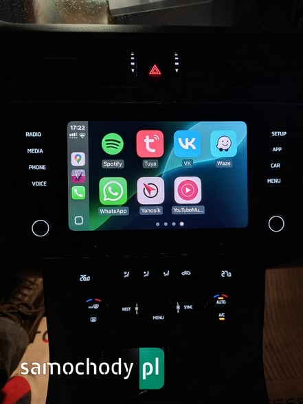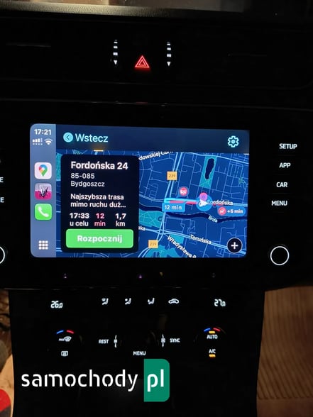 W samochodzie można podłączyć telefon i korzystać ze wszystkich aplikacji dostępnych w telefonie na ekranie pojazdu , np. nawigacja Google , czy Spotify itp.