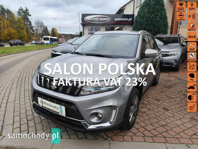 SALON AUTO WIM POLECA : SUZUKI VITARA ( posiadamy w różnych kolorach, zadzwoń i dopytaj) w bogatej wersji wyposażeniowej PREMIUM PLUS. Z najlepszym silnikiem benzynowym 1.4 z miękka hybrydą wspomagającą silnik benzynowy( niższe zużyciem paliwa). Inteligentny napęd na 4 koła idealnie nadaje się w cięższy teren oraz na śliską i niebezpieczną nawierzchnię. Auto kupione w polskim salonie, z minimalnym przebiegiem , na fabrycznej 3 letniej gwarancji producenta z możliwością przedłużenia do 5 lat. Stan pojazdu jak nowy, bez uszkodzeń . Bezwypadkowy. Posiadamy pełną historię przebiegu oraz pochodzenia.Samochód sprzedajemy z FV23% dzięki czemu istnieje możliwość zakupu w leasingu operacyjnym oraz odliczenia podatku VAT.