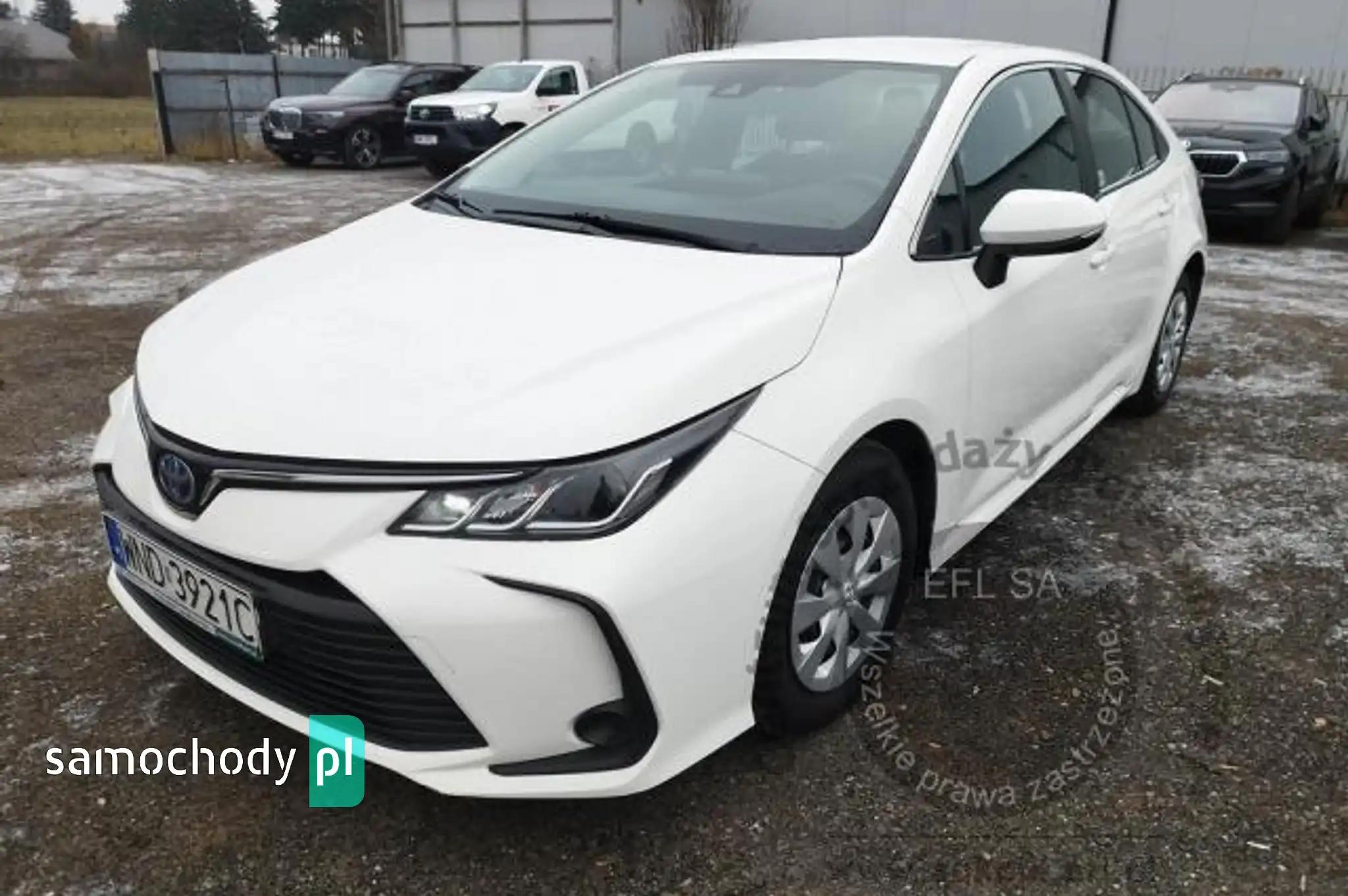 6 głośnikówABSAntena dachowa Shark-FinAsystent utrzymania pasa ruchu (LTA)Automatyczne światła drogoweBA - system wspomagania hamowaniaCzujnik zmierzchuDywaniki weluroweEBD - elektroniczny rozdział sił hamowaniaElektrycznie regulowane szyby przednie i tylneElektryczny hamulec postojowy (EPB)ESC - układ stabilizacji toru jazdyFelgi stalowe 15 z ogumieniem 195/65Fotel kierowcy z regulacją wysokościFotele przednie z profilowanym podparciem bocznymFunkcja automatycznego opuszczania i unoszenia szyb, przód i tyłFunkcja oświetlenia Follow-Me-HomeGniazdo 12VGniazdo USBHAC - system wspomagający pokonywanie podjazduImmobilizerInterfejs Android Auto i Apple CarPlayKamera cofaniaKanapa tylna składana, dzielona 60/40Kierownica wielofunkcyjnaKieszeń w oparciu fotela pasażeraKlimatyzacja automatyczna - dwustrefowaKolumna kierownicy regulowana elektrycznie w dwóch płaszczyznachKomputer pokładowyLakier uniListwa okienna chromowanaLusterka boczne ogrzewaneLusterka boczne regulowane elektrycznieMiękkie materiały wykończenioweNawiew wentylacji na tylną kanapęObrotomierzObsługa stacji radiowych w technologii cyfrowej (DAB)Ogranicznik prędkości - automatycznyPodłokietnik przedniPodłokietnik tylnyPodsufitka jasnaPoduszka powietrzna kolan kierowcyPoduszki powietrzne boczne - przódPoduszki powietrzne kierowcy i pasażeraPoduszki powietrzne kurtynowePrędkościomierz analogowySygnalizacja niezapiętych pasów bezpieczeństwaSystem automatycznego powiadamiania ratunkowego (eCall)System AVAS (Acoustic Vehicle Alerting System)System BluetoothSystem monitorowania ciśnienia w oponachSystem multimedialny Toyota Touch 2 z ekranem dotykowym 8 caliSystem ostrzegania o niezamierzonej zmianie pasa z funkcją powrotu na zadany tor jazdy (LDA+SC)System oświetlenia wnętrzaSystem rozpoznawania znaków drogowych (RSA)System wykrywania zmęczenia kierowcy (SWS)Światła do jazdy dziennej typu LEDŚwiatła główne w technologii projektorowejTapicerka materiałowaTempomat aktywnyUchwyty ISOFIX do mocowania fotelika dziecięcegoUkład wczesnego reagowania w razie ryzyka zderzenia (PCS) z systemem wykrywania pieszych (PD)Uruchamianie pojazdu przyciskiem Start/StopUsługi łączności Toyota Connected CarVSC - system stabilizacji toru jazdy z TRCWykończenie elementów wnętrza w kolorze ciemnymWyłącznik poduszki powietrznej pasażeraWyświetlacz kolorowy między zegarami 4,2 calaZabezpieczenie tylnych drzwi przed otwarciem przez dzieciZamek centralny sterowany pilotemZestaw do naprawy przebitej oponyCzujniki odległości przy parkowaniu - tyłZabezpieczenie antykradzieżowe Meta System BLE42, dodatkowe