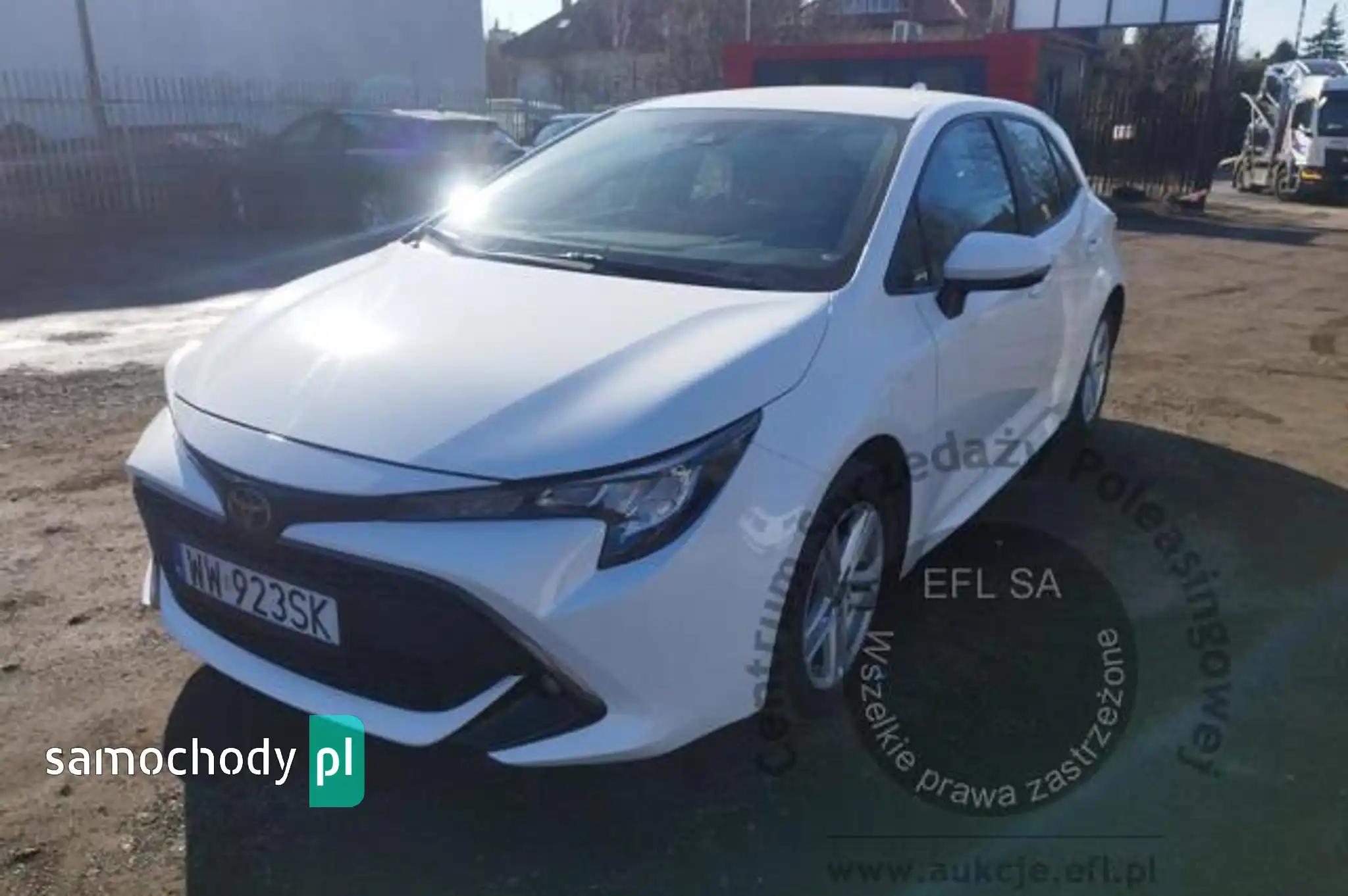 6 głośnikówABSAntena dachowa Shark-FinAutomatyczne światła drogoweBA - system wspomagania hamowaniaCzujnik zmierzchuDyfuzor tylny w kolorze Piano BlackEBD - elektroniczny rozdział sił hamowaniaElektrycznie regulowane szyby przednie i tylneElektryczny hamulec postojowy (EPB)ESC - układ stabilizacji toru jazdyFelgi aluminiowe 16 z ogumieniem 205/55Fotel kierowcy z regulacją wysokościFotel pasażera z regulacją wysokościFotele przednie z profilowanym podparciem bocznymFunkcja automatycznego opuszczania i unoszenia szyb, przód i tyłFunkcja oświetlenia Follow-Me-HomeGałka dźwigni zmiany biegów obszyta skórąGniazdo 12VGniazdo USBHAC - system wspomagający pokonywanie podjazduImmobilizerInterfejs Android Auto i Apple CarPlayKamera cofaniaKanapa tylna składana, dzielona 60/40Kierownica skórzanaKierownica wielofunkcyjnaKieszeń w oparciu fotela pasażeraKlimatyzacja automatyczna - dwustrefowaKolumna kierownicy regulowana elektrycznie w dwóch płaszczyznachKomputer pokładowyLakier uniLusterka boczne ogrzewaneLusterka boczne regulowane elektrycznieMiękkie materiały wykończenioweObrotomierzObsługa stacji radiowych w technologii cyfrowej (DAB)Ogranicznik prędkości - automatycznyOświetlenie w osłonach przeciwsłonecznychPodłokietnik przedniPodłokietnik tylnyPodsufitka ciemnaPoduszka powietrzna kolan kierowcyPoduszki powietrzne boczne - przódPoduszki powietrzne kierowcy i pasażeraPoduszki powietrzne kurtynowePrędkościomierz analogowySpojler tylnySygnalizacja niezapiętych pasów bezpieczeństwaSystem automatycznego powiadamiania ratunkowego (eCall)System BluetoothSystem monitorowania ciśnienia w oponachSystem multimedialny Toyota Touch 2 z ekranem dotykowym 8 caliSystem ostrzegania o niezamierzonej zmianie pasa z funkcją powrotu na zadany tor jazdy (LDA+SC)System oświetlenia wnętrzaSystem rozpoznawania znaków drogowych (RSA)System wykrywania zmęczenia kierowcy (SWS)Światła do jazdy dziennej typu LEDŚwiatła główne LED (Basic)Światła przeciwmgielne LEDŚwiatła tylne typu LEDTapicerka materiałowaTempomat aktywnyUchwyty ISOFIX do mocowania fotelika dziecięcegoUkład wczesnego reagowania w razie ryzyka zderzenia (PCS) z systemem wykrywania pieszych (PD)Usługi łączności Toyota Connected CarVSC - system stabilizacji toru jazdy z TRCWstawki chromowane we wnętrzu autaWykończenie elementów wnętrza w kolorze ciemnymWyłącznik poduszki powietrznej pasażeraWyświetlacz kolorowy między zegarami 4,2 calaZabezpieczenie tylnych drzwi przed otwarciem przez dzieciZamek centralny sterowany pilotemZestaw do naprawy przebitej oponyCzujniki odległości przy parkowaniu - tył