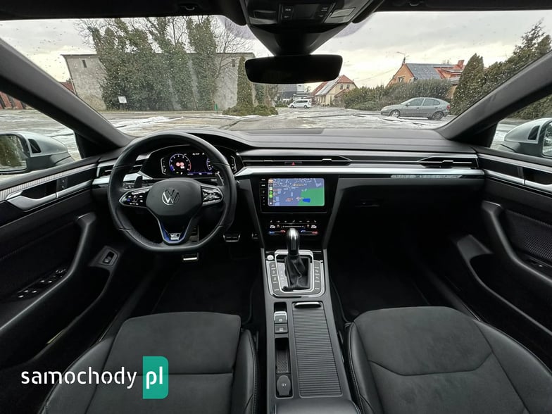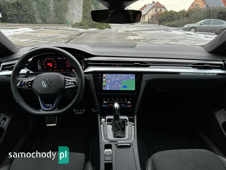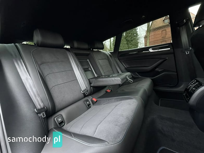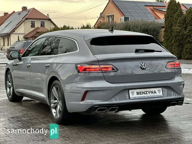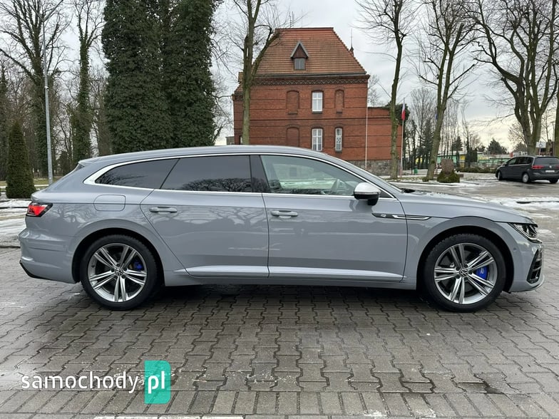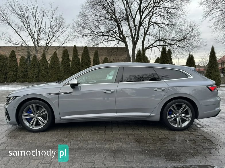 Bogato wyposażony Volkswagen Arteon R Shooting Brake 4Motion w sportowej odmianie "R". Model po liftingu. Nietuzinkowy kolor nadwozia "Moonstone grey" o kodzie lakieru "LA7C". Dynamiczny silnik 2.0 TSI turbo (poprawiona jednostka seria EA888 trzeciej generacji o oznaczaniu "DNFG" z rozrządem na łańcuchu) benzyna o mocy 320KM i 420Nm, zapewnia fenomenalne osiągi z napędem 4Motion. Niski oryginalny i udokumentowany przebieg. Automatyczna 7 biegowa skrzynia DSG pracuje prawidłowo i płynnie zmienia biegi. Czyste i zadbane auto, dwa kluczyki, kompletna dokumentacja, książka serwisowa. Opony zimowe w bardzo dobrym stanie. Norma spalin EURO 6. Auto miało w swojej historii uszkodzenie (na wszystkie pytania odpowiem telefonicznie).
