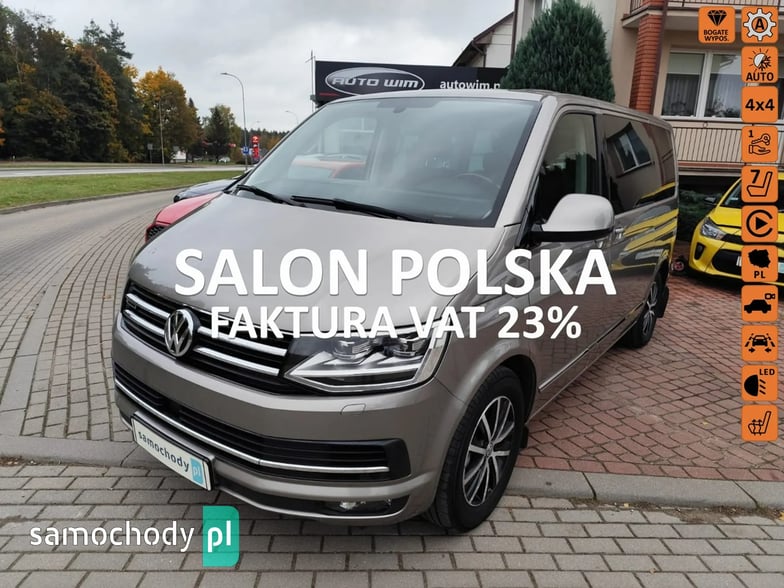 SALON AUTO WIM POLECA : VOLKSWAGEN MULTIVAN w mocnej wersji silnikowej 2.0D o mocy 204 KM, napędem 4x4 oraz automatyczną skrzynią biegów. Kupiony w polskim salonie i do lutego 2025 r użytkowany bezwypadkowo przez jednego właściciela. W lutym 2025r został przez nas nabyty na wyprawę po Skandynawii. Auto zaraz po zakupie zostało poddane bardzo dużemu przeglądowi, zostały wyeliminowane wady producenta dotyczące silnika dzięki czemu pojazd nie bierze ani grama oleju. ( do wglądu fv z przeglądu oraz wszelkich wymian jakich dokonaliśmy). Podczas naszego użytkowania pokonaliśmy około 8 tyś km. Samochód jest w bardzo dobrym stanie technicznym jak również wizualnym, jest bezwypadkowy. Bardzo bogata wersja wyposażeniowa HIGHLINE m.in.: automatyczne, przesuwne drzwi boczne, automatyczna klapa bagażnika , zamontowany hak holowniczy oraz nowy zestaw multimedialny dzięki czemu jest możliwość podłączenia telefonu poprzez CarPlay oraz Android Auto( oryginalne radio w bagażniku). Samochód naprawdę godny polecenia, nie wymaga żadnego nakładu . Na gwarancji . Posiadamy pełną dokumentację przebiegu oraz pochodzenia.Na pojazd wystawiamy FV23% dzięki czemu istnieje możliwość zakupu w leasingu operacyjnym jak również odliczenia podatku VAT23%. Serdecznie zapraszamy do zakupu .Auto godne polecenia.