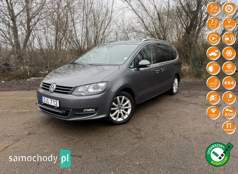 Witam państwa w auto komisie Osowa firmą z 30 letnim doświadczeniem w dziedzinie motoryzacji dziś w ofercie sprzedaży lub zamiany posiadamy auto świeżo sprowadzone ze Szwecji zmiękną historia serwisowa tym autem jest Vw Sharan wersja high line z napędem 4-Motion czyli 4x4 auto z rocznika 2017 z silnikiem diesla 2.0tdi o mocy 184 KM najmocniejsza i najlepsza jednostka napędowa w tym modelu auto bezwypadkowe w przepięknym stanie wizualnym i technicznym bez w kładu finansowego . Auto narodzi miaro wyposażone jak to w wersji High - line między innymi w :