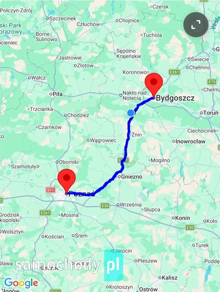 Kluczowe miejscowości: Poznań, Czerwonak, Pobiedziska, Łubowo, Gniezno, Rogowo, Żnin, Szubin, Białe Błota, Bydgoszcz.